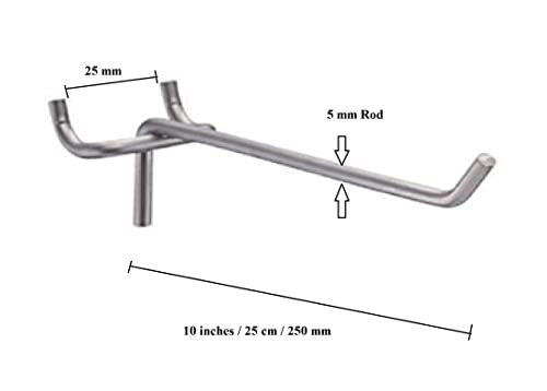 Q1 Beads 12 Pcs 10" Stainless Steel Gridwall Display Hook Hanger for Showroom/Mobile Shop/Wall Mount/Clothes (10 Inch) Pack of 12 Pcs.