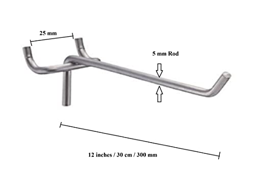 Q1 Beads 12 Pack 12" Heavy Duty Pegboard Hooks Kit Peg Hooks for 1” Spaced Pegboards, Utility Hooks for Wall Organizing in Home or Garage (Chrome, 12 inch, 12 Pcs)