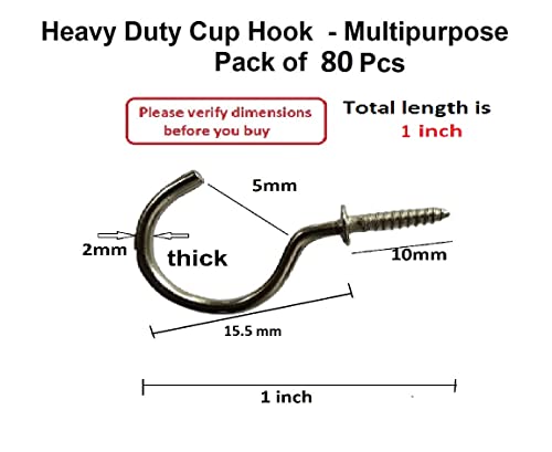 Q1 Beads 1" Inch Steel Cup Hook J Hooks - Pack of 80 Pieces (Chrome)