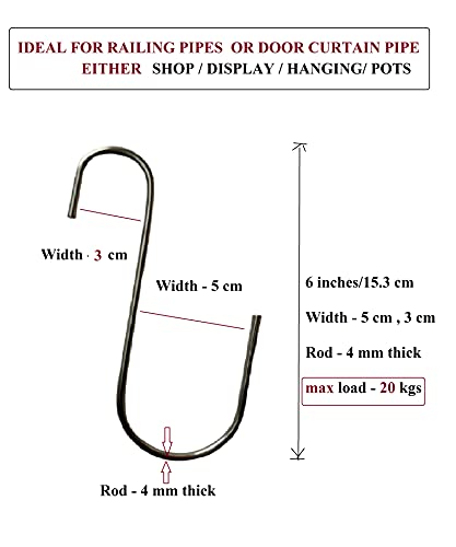 Q1 Beads 12 Pack 6" S Hooks Stainless Steel Heavy Duty S Hook Large for Kitchen Cutlery Hanging, Bathroom ,Shop,Showroom Hanging Plant,Storage Room ,Office ,Pans ,Tree Branch Hooks,Closet,Garden,Flower Basket,Pergola,Pan, Pot,Coat,Bag