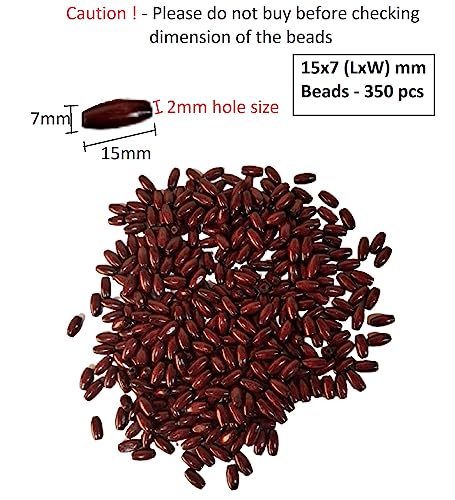 Q1 Beads 350 Pieces 15 x 7 mm Small Hole Wooden Beads for Craft,Macrame - Maroon Color (2 mm Hole)