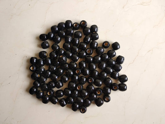Q1 Beads 100 Pcs Black Color Natural Plain Oval Wooden Beads with Big Hole Ball for Jewellery Making & DIY Craft Findings and Multipurpose(16x17 mm,10 mm Hole,Black Color)