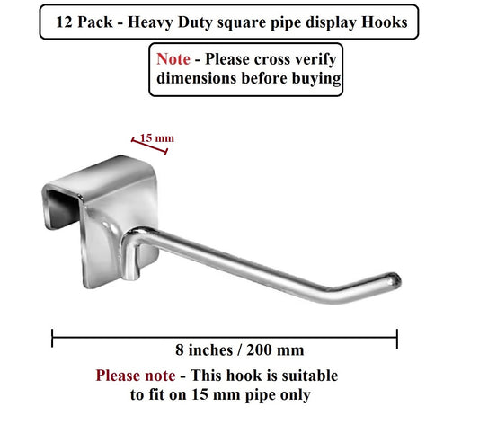 Q1 Beads 12 Pcs 8" Stainless Steel Tube Panel/Square Pipe [15mm] Display Hook Hanger for Showroom/Mobile Shop/Wall Mount/Clothes[Chrome)