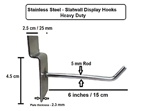 Q1 Beads 12 Pcs 6" Stainless Steel Slatwall Panel Display Hook Hanger for Showroom/Mobile Shop/Wall Mount/Clothes (6 Inch) Pack of 12 Pcs.