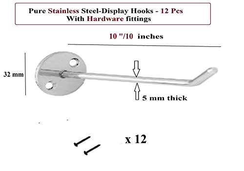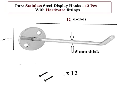 Q1 Beads 12 Pcs 12" Stainless Steel Wall Mount Display Hook Hanger Combo for Showroom/Mobile Shop/Wall Mount/Clothes and Hanging Accessories Pack of 12, (12 Inch)