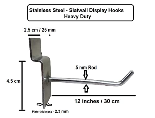 Q1 Beads 12 Pcs 12" Stainless Steel Slatwall Display Hook Hanger for Showroom/Mobile Shop/Wall Mount/Clothes (12 Inch) Pack of 12 Pcs.