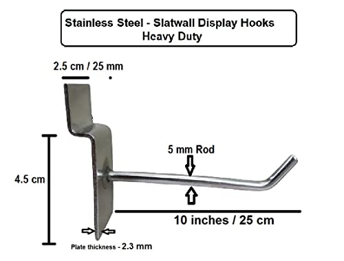 Q1 Beads 12 Pcs 10" Stainless Steel Slatwall Panel Display Hook Hanger for Showroom/Mobile Shop/Wall Mount/Clothes (10 Inch) Pack of 12 Pcs.