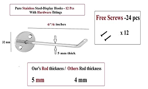 Q1 Beads 12 Pcs 6" Inch Stainless Steel Wall Mount Display Hook for Mobile Shop, Stationary Shop, Showroom, Boutique with Hardware Fittings(6 Inches,12 Pcs)