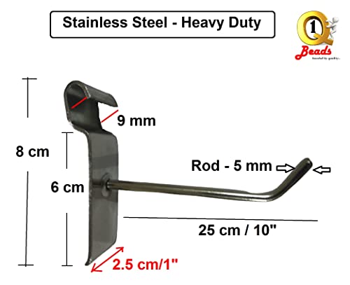 Q1 Beads 12 Pcs 10" Stainless Steel Gridwall Display Hook Hanger for Showroom/Mobile Shop/Wall Mount/Clothes (10 Inch) Pack of 12 Pcs.