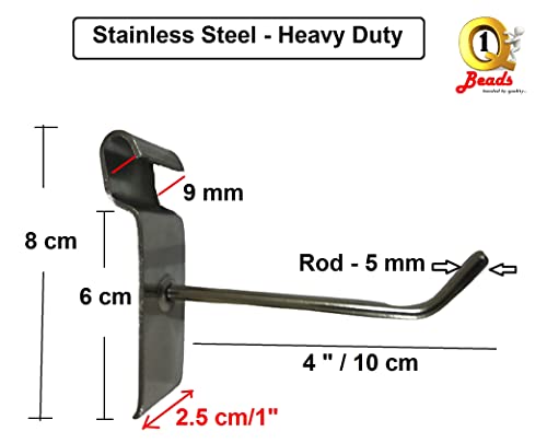 Q1 Beads 4 Pcs 10" Stainless Steel Gridwall Display Hooks Hanger for Grid Shelf Hook Grid Mount, Grid Panel Hooks, Showroom, Mobile Shop (10 Inch) Pack of 4