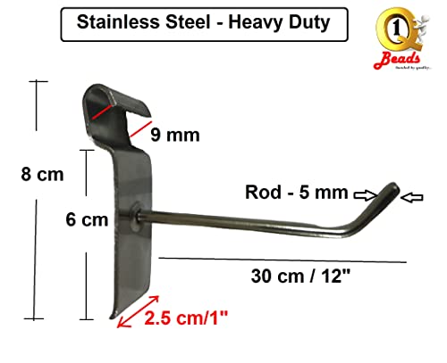Q1 Beads 12 Pcs 12" Stainless Steel Gridwall Panel Display Hook Hanger for Showroom/Mobile Shop/Wall Mount/Clothes (12 Inch) Pack of 12 Pcs.
