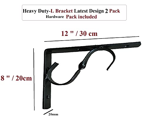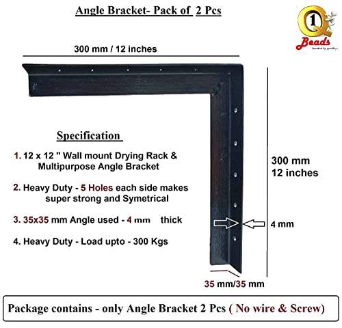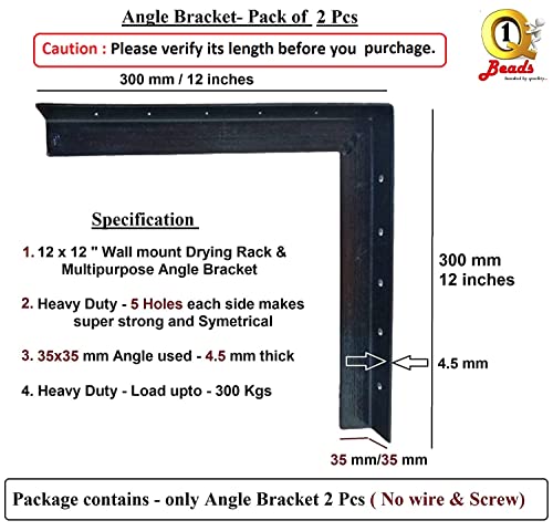 Q1 Beads 2 Pack 300 mm Metal Heavy Duty 300 kgs Capacity Wall Mount Angle Bracket L Bracket Industrial Grade for Drying Clothes ,Wall Shelf, Shop, Showroom, Rack - Multipurpose (12 x 12" , Powder Coated)