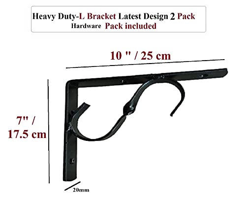 Q1 Beads 2 Pack 10" inch Heavy Duty Angle Bracket L Bracket for Wall Shelf, Shop, Showroom, Hotel, Rack (10 x 7 Inches, Black)