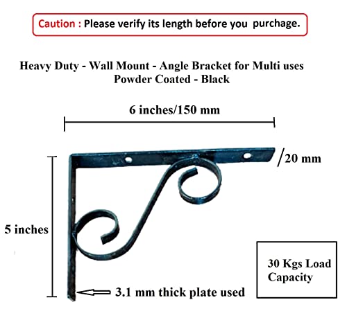 Q1 Beads 2 Pack 12" Angle Bracket L Bracket for Wall Shelf, Shop, Showroom, Rack (6 x 5 Inches, Black Powder Coated)21