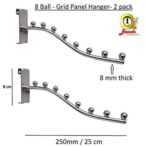 Q1 Beads Steel 8 Balls Pin Jali Hooks Grid Panel Hanger for Retail Display Gridwall Panel Mesh Made in 8 mm Rod (2 Pack, Chrome)