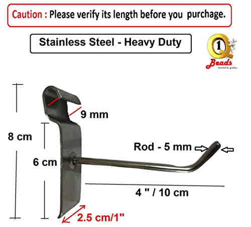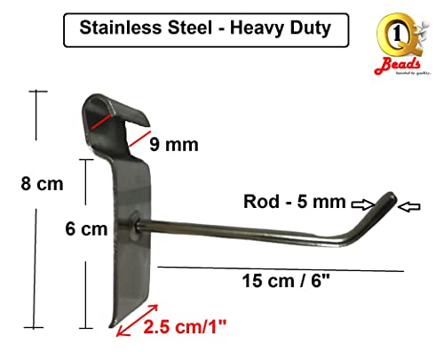 Q1 Beads 4 Pcs 6" Stainless Steel Gridwall Display Hook Hanger for Showroom/Mobile Shop/Wall Mount/Clothes (6 Inch) Pack of 4 Pcs.