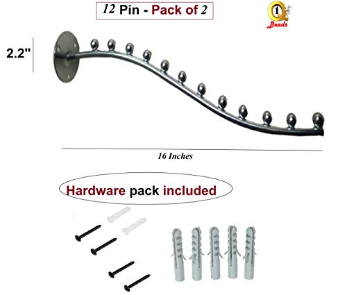 Q1 Beads 12 Ball Pin Metal Hooks Wall Drop Hanger - Pack of 2, Steel