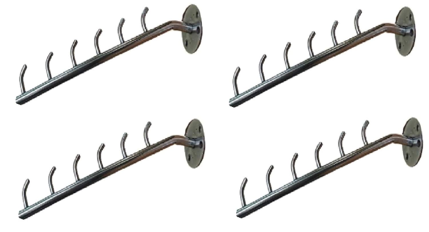 Q1 மணிகள் துருப்பிடிக்காத ஸ்டீல் 6 முள் ஹூக் வால் டிராப் ஹேங்கர் ஃபார் துணி -பேக் ஆஃப் 6 - ஸ்டெயின்லெஸ் ஸ்டீல் க்ளோத்ஸ் ஹேங்கர் ஹெவி டியூட்டி டிரையிங் ரேக் வால் மவுண்ட் ஹார்டுவேர் ஃபிட்டிங்குடன்